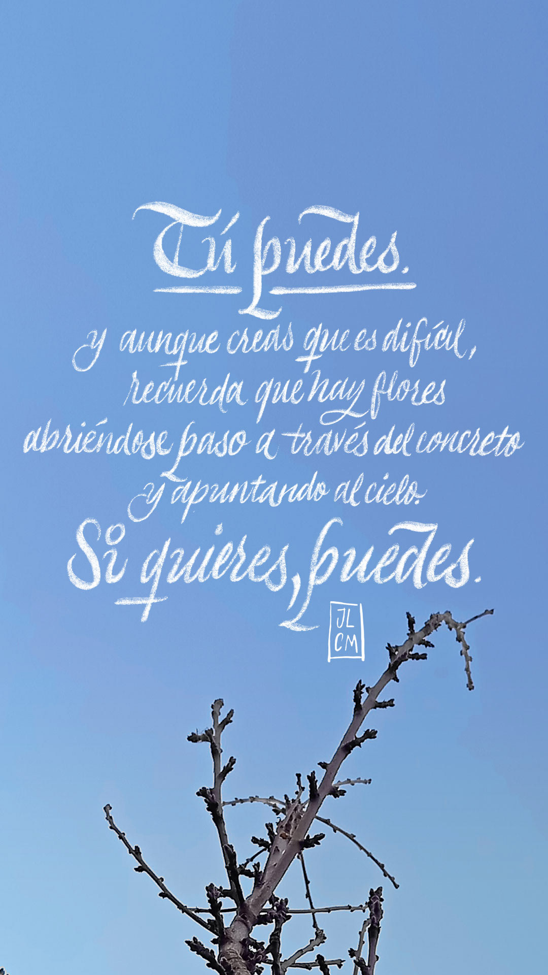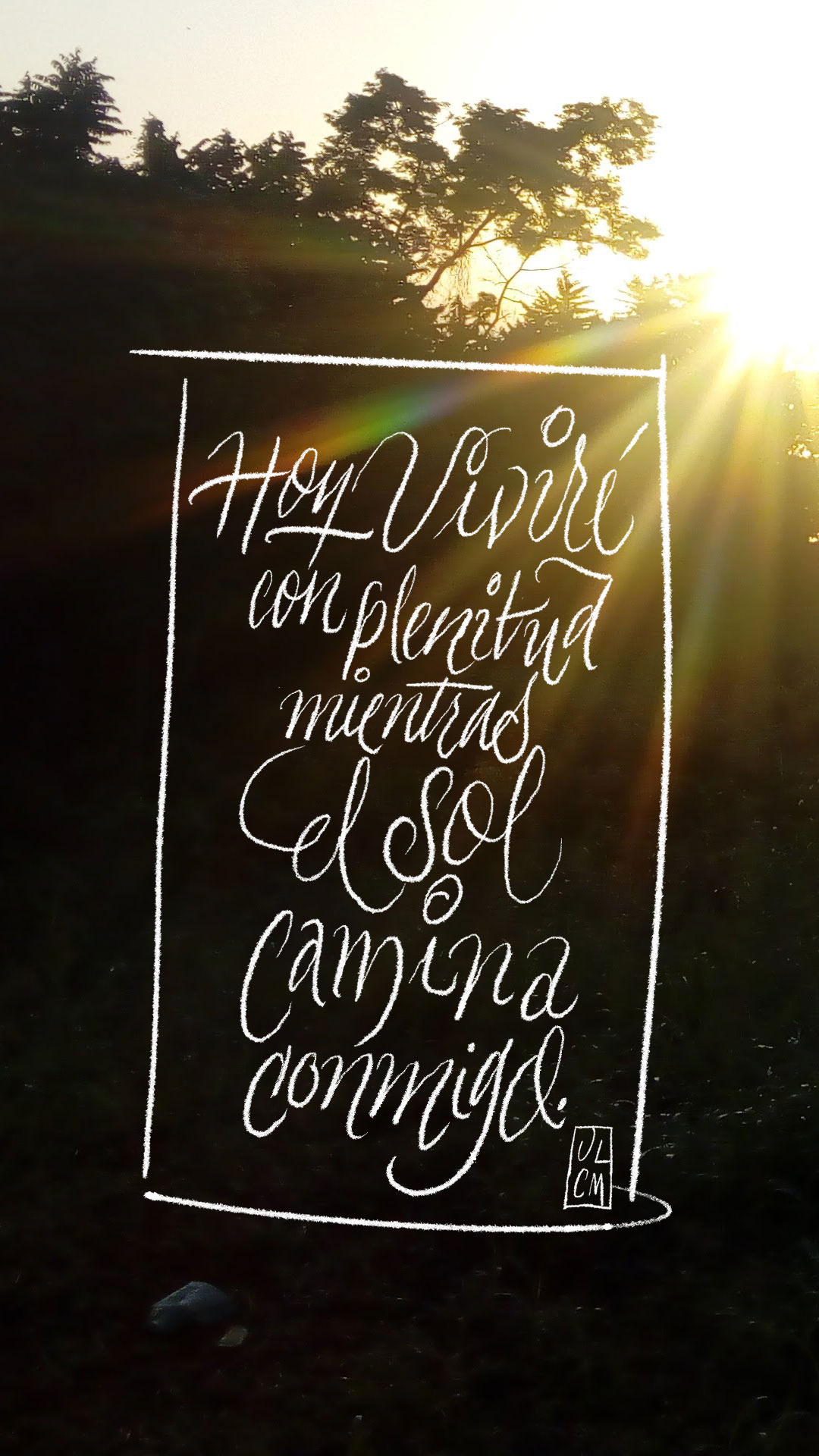 "El Sol Camina Conmigo" es un proyecto personal con una serie de tarjetas digitales y publicaciones con mensajes positivos sobre la vida, el amor, el cariño y la buena voluntad, con fotografías, escritura a mano, caligrafía y diseño, todo realizado por mí.