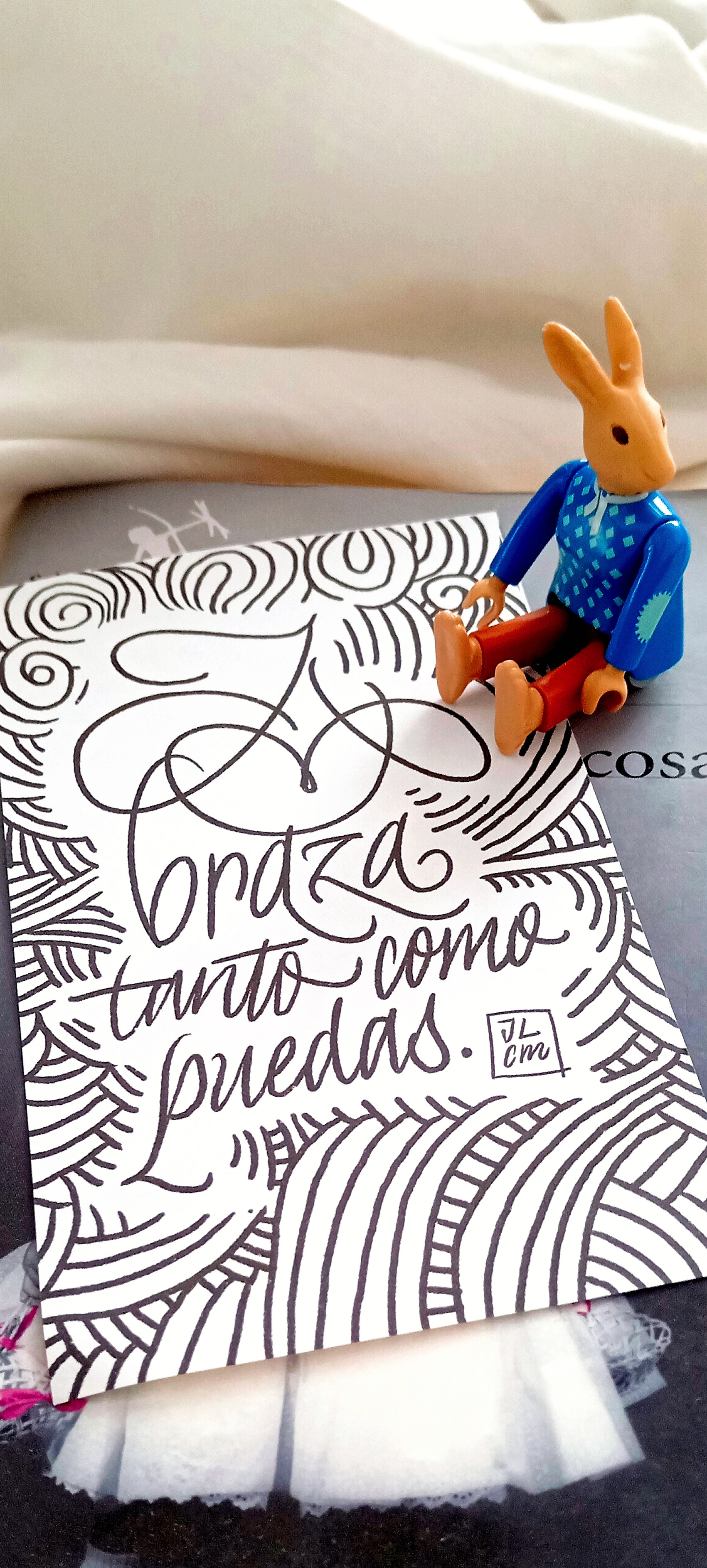 Cada postal se creó en formato digital, pero también se imprimieron y se colocaron en un pequeño escenario para fotografiarlas y que combinaran con el texto, ampliando así su significado. Este ejercicio se convirtió en una forma fantástica de explorar diferentes estilos para expresar sentimientos y pensamientos sobre mi vida.