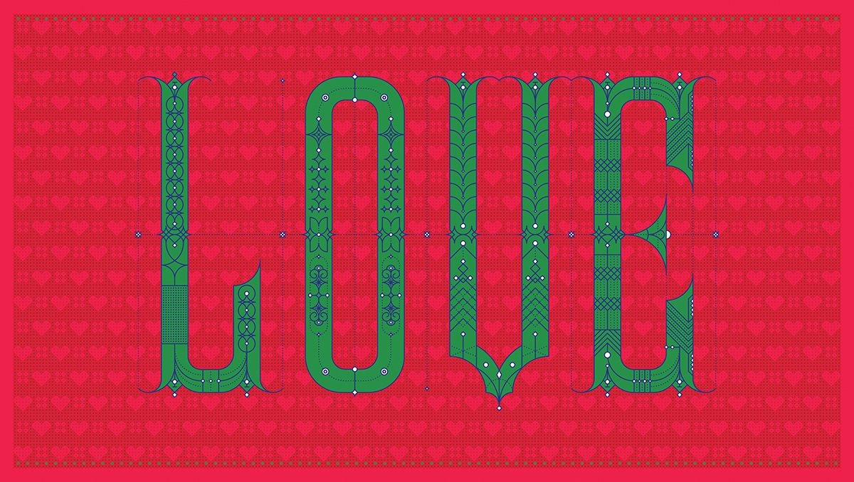 Los elementos que la conforman parten de una tipografía alta y condensada, con sugerentes elementos de letra toscana y de una estructura decorativa muy singular. Desarrolla específicamente en altas, bien modular pero no por ello indócil a generar generar otros elementos gráficos complementarios. Los detalles que lo forman dentro de las siluetas de cada letra parten de elementos como botonados, bordados y pedrería, generando una textura compleja pero increíble en su representación gráfica permitiendo muchas posibilidades como elemento central de diseño, que incluso en la aplicación de color llega a tener una personalidad muy contemporánea. Incluso, en su version simple sin adronos tambien llega a tener un cuerpo y una mancha tipográfica sólida y monumental.
