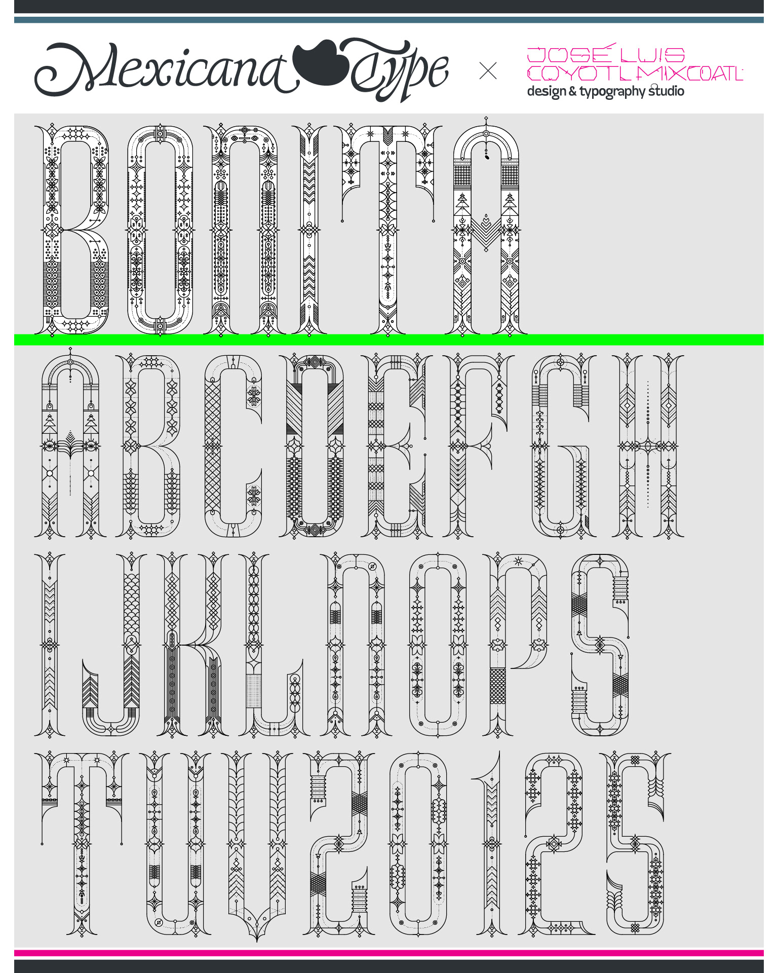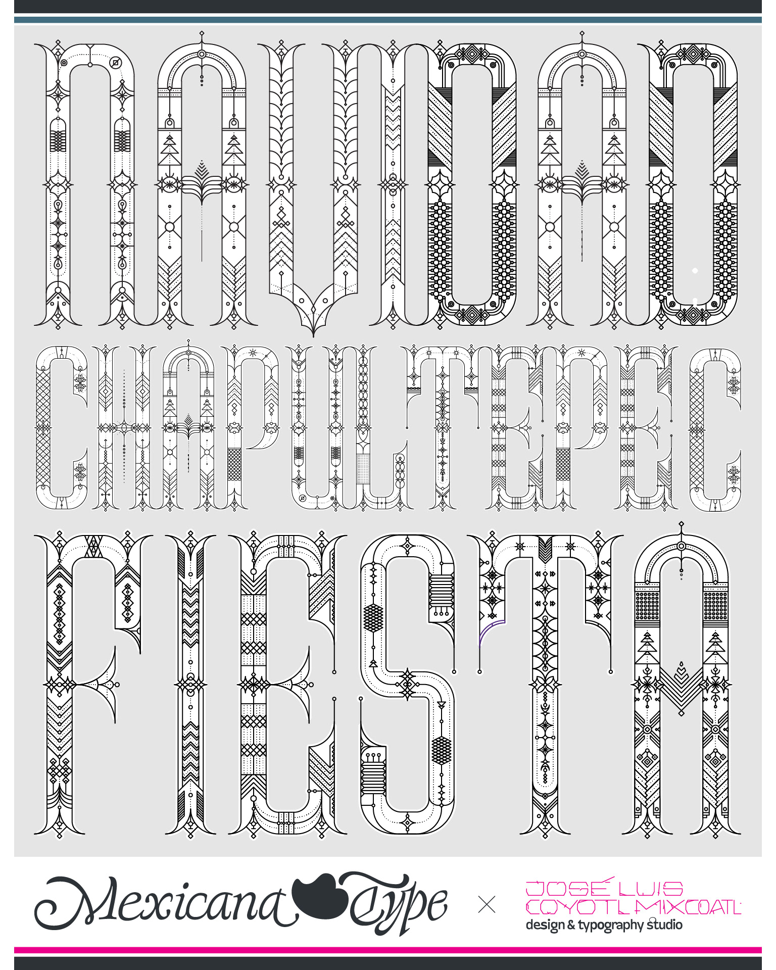 Inicialmente fue hecha para poder representar valores de la cultura mexicana que recogen influencias arquitectónicas, textiles ancestrales e indumentarias folclóricas, pues por varios años me desarrolle como bailarín de ballet folclórico mexicano, y la experiencia y la fascinación por los bordados indígenas, siendo indígena, apuntalaron eventualmente con el desarrollo de un conjunto de letras iniciales que fueron encontrando cabida a diferentes aplicaciones.