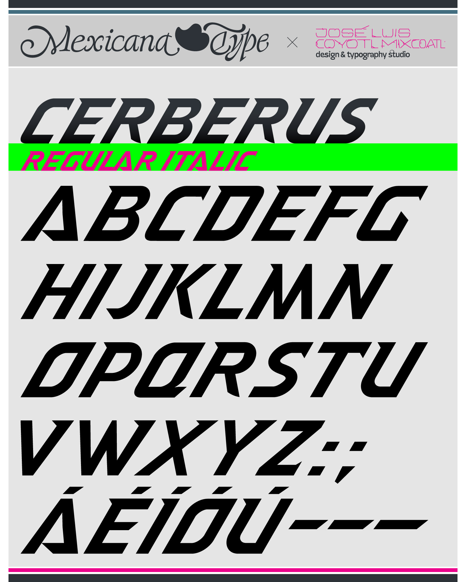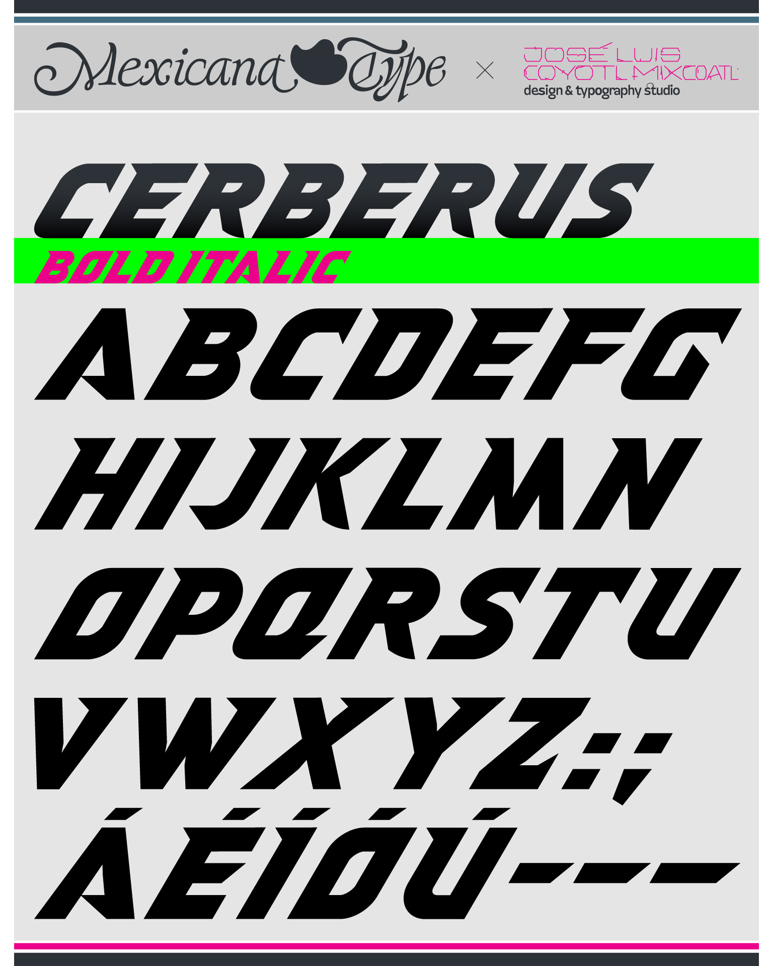 La idea de MxT Cerberus era representar una tipografía que fuera una mezcla de una sans serif y con detalles en remates sencillos que dieran una estructura simple pero con mucha personalidad, quizá un poco remitiendo a estilos de letra negra pero de uso display más moderno.