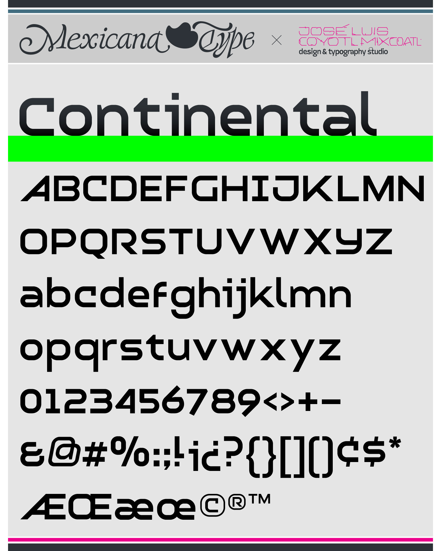 MxT Continental fue desarrollada especialmente para ser grabada en metal en puntajes pequeños en una serie de monedas conmemorativas y para uso en títulos para promocionales de éstas. El reto principal fue hacer un desarrollo que pudiese adaptarse al medio impreso y al grabado sobre metal manteniendo el detalle, un buen grado de lectura y por supuesto con la sobriedad para la cuál fue diseñada, con el diseño de una tipografía casi unilineal y modular, de trazos geométricos y firmes, con espacios blancos amplios y extendida para ganar cuerpo pues no se tenia el impedimento de que se fuera a utilizar en composiciones y textos largos.