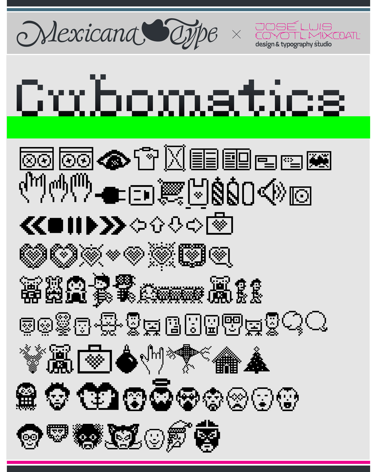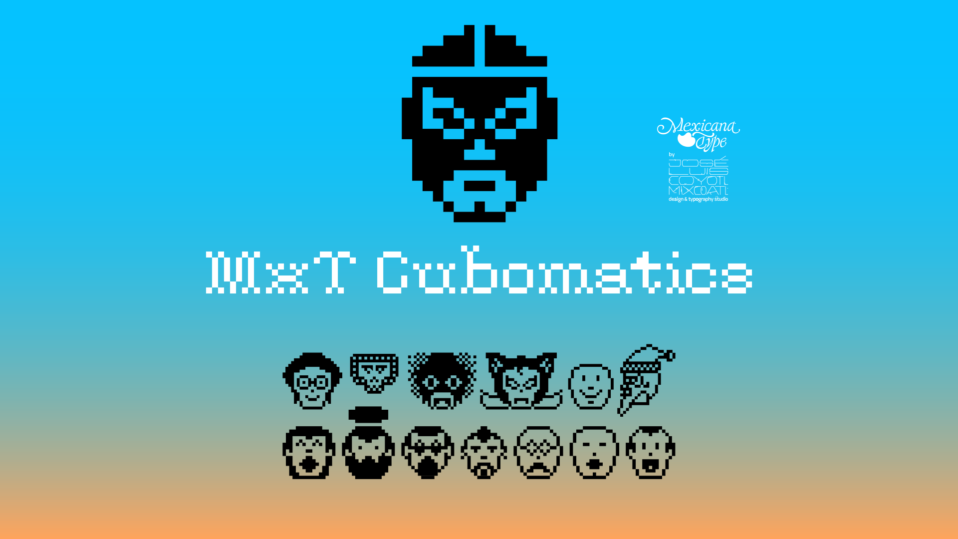 MxT Cubomatics fue una colección de íconos diseñados para la interface de mi sitio de internet y mi marca personal a mediados de la primera década del 2000, con la intención de tener una serie de elementos con una estética de 8 bits monocromática, tanto para íconos de secciones del sitio, cursores y otros elementos de uso promocional para materiales impresos, permitiendo un uso muy lúdico al ser de uso personal.