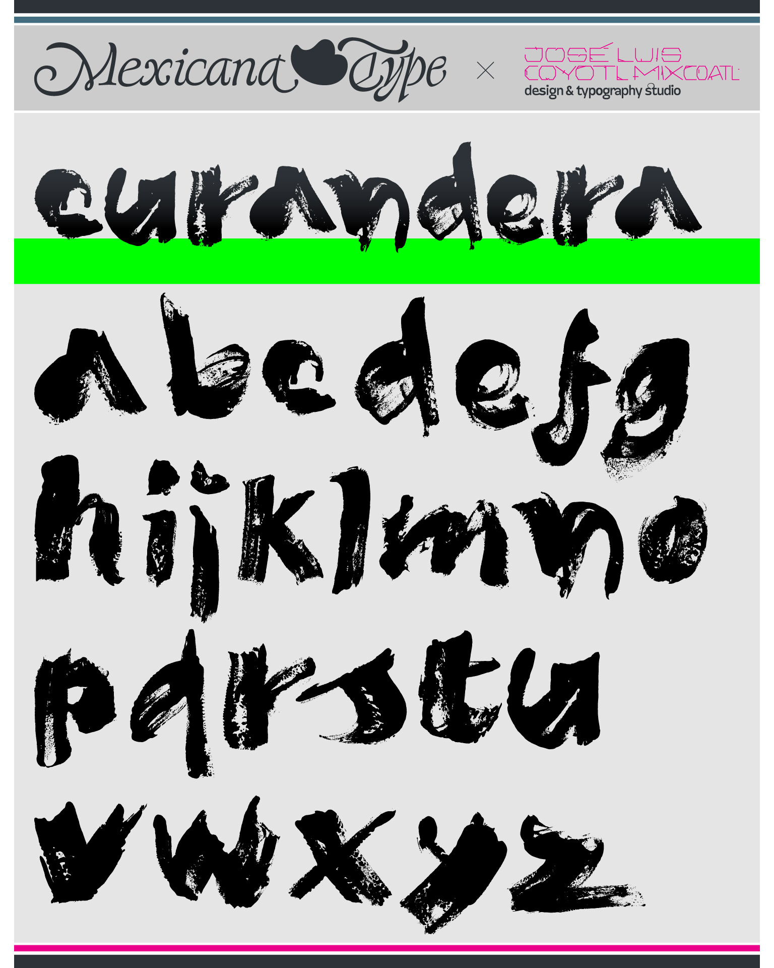 Para el desarrollo de estilo de un poster que estaba diseñando estaba buscando un estilo específico de letras pintadas con una estética cruda y casual. De ahí nació MxT Curandera, de explorar un estilo hjecho a mano, con pintura espesa y brocha seca, con una personalidad un tanto accidentada y de trazo libre.