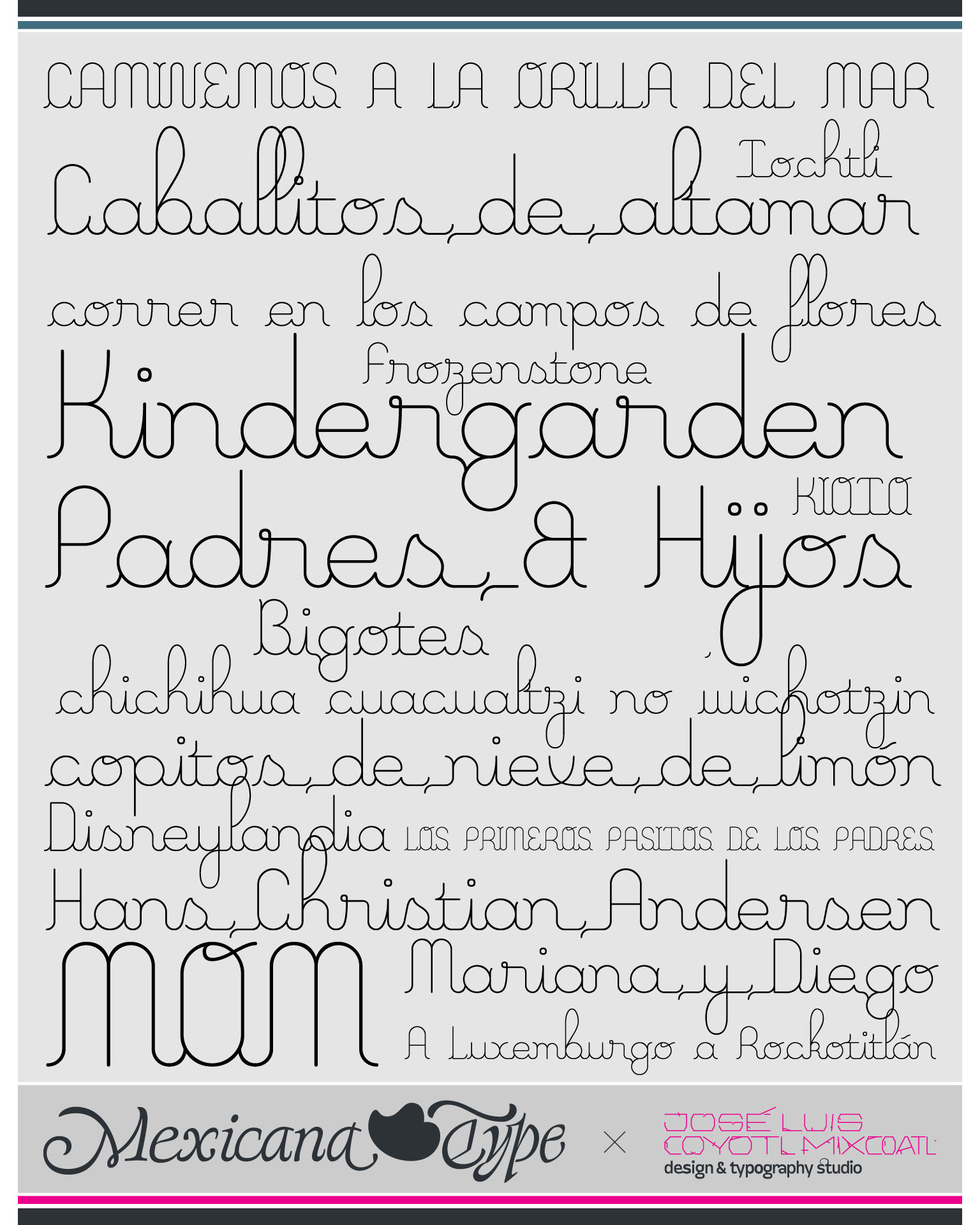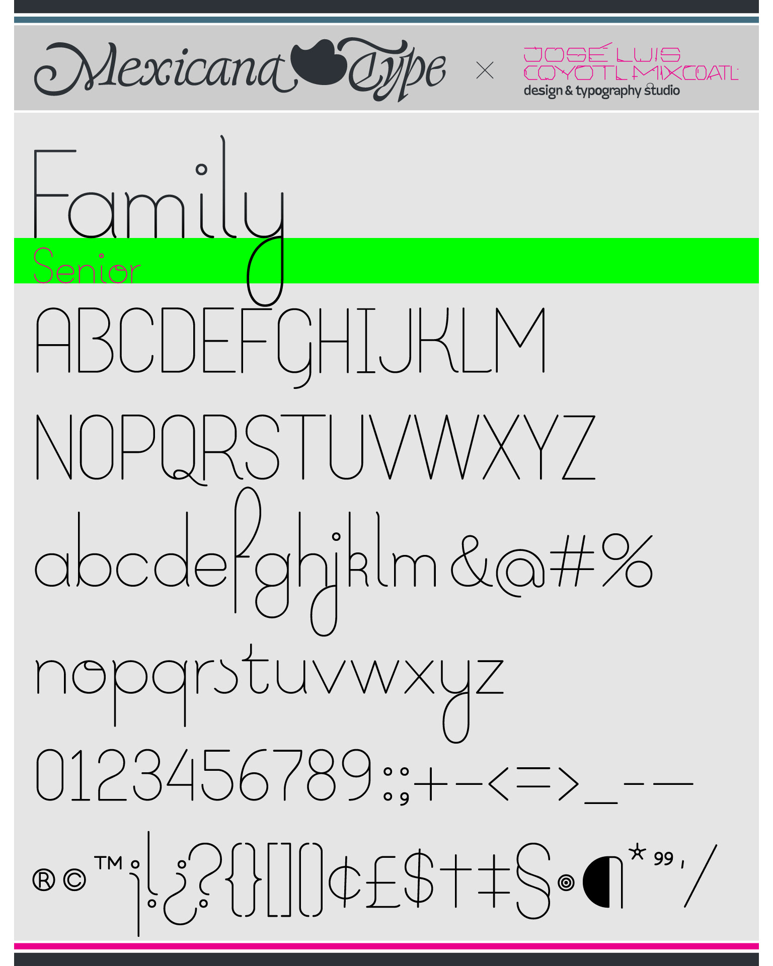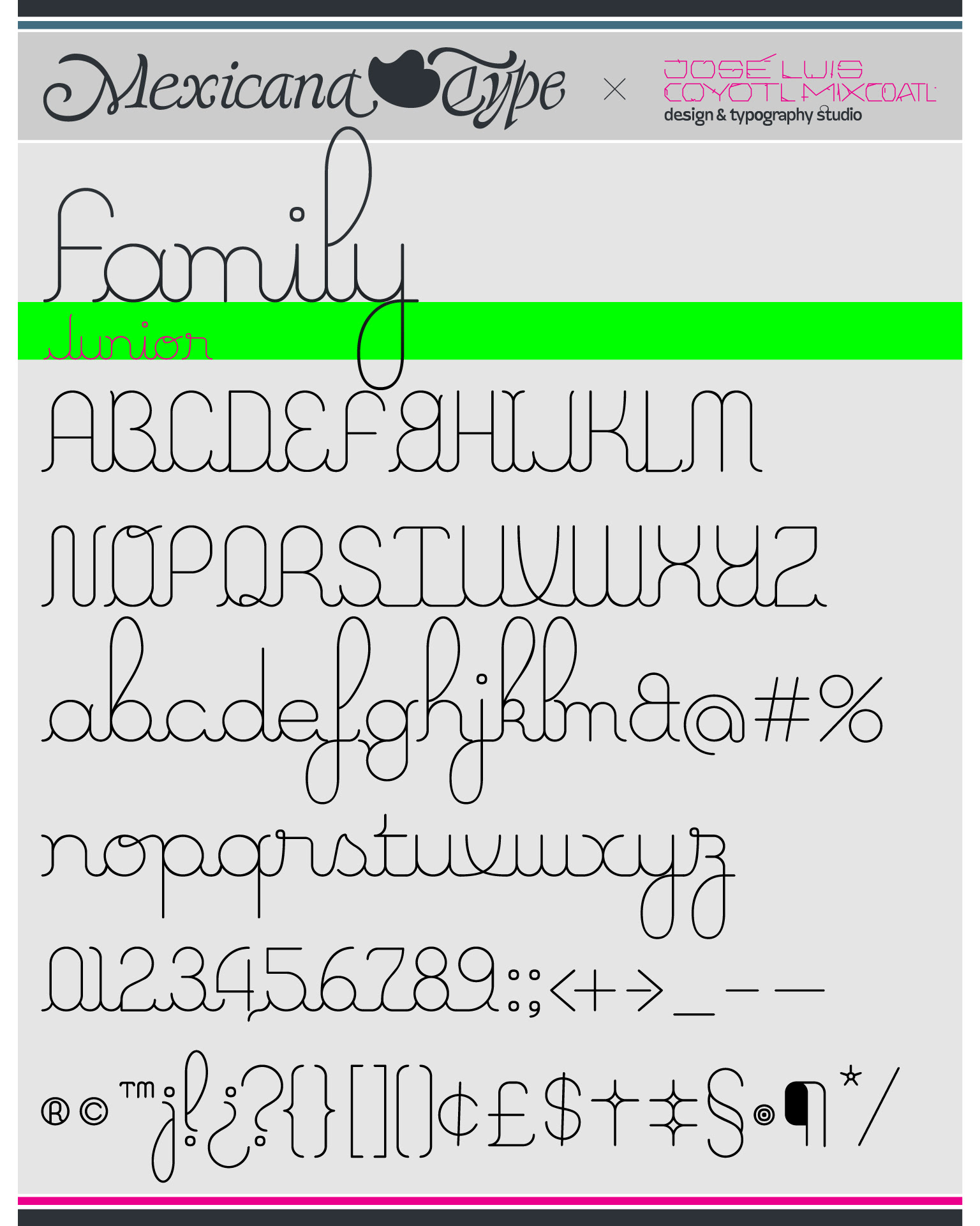 Inicialmente MxT Family fue desarrollada sobre la base de unatipografía existente, posteriormente se hizo un reinterpretación que fuese mas funcional a los propósitos y usos de tal proyecto. De grosor unilineal y estructura modulada y geométrica, asi como enlaces a manera de script, de manera que hiciera referencia a la escritura básica, y que funcionara también a manera de letras bordadas, que fuera por si misma amigable y con gracia, pero quizá con un toque más sofisticado y contemporáneo. Su aplicación consistía en el diseño de títulos de algunos artículos de la revista, así como en su cabezal o logo.