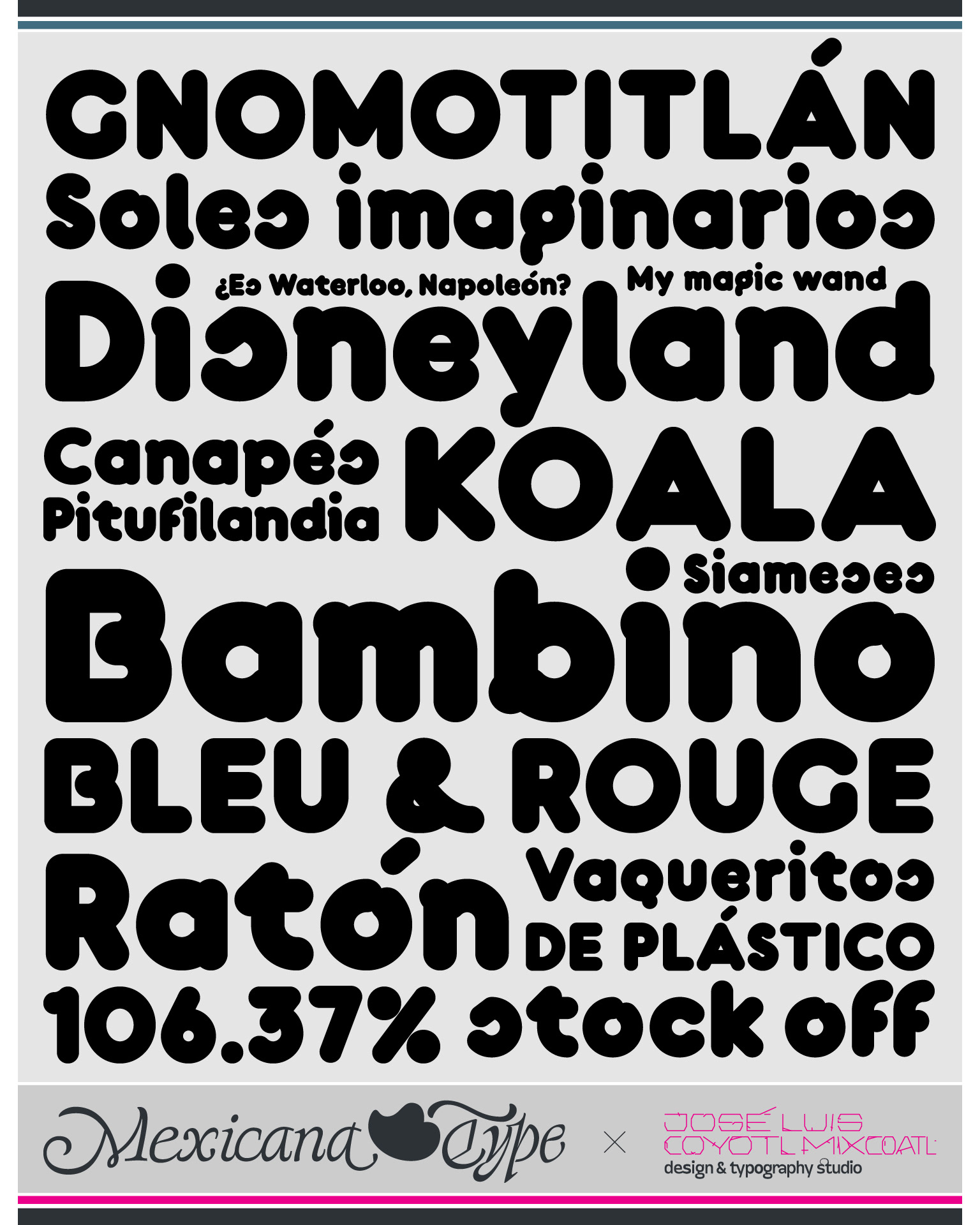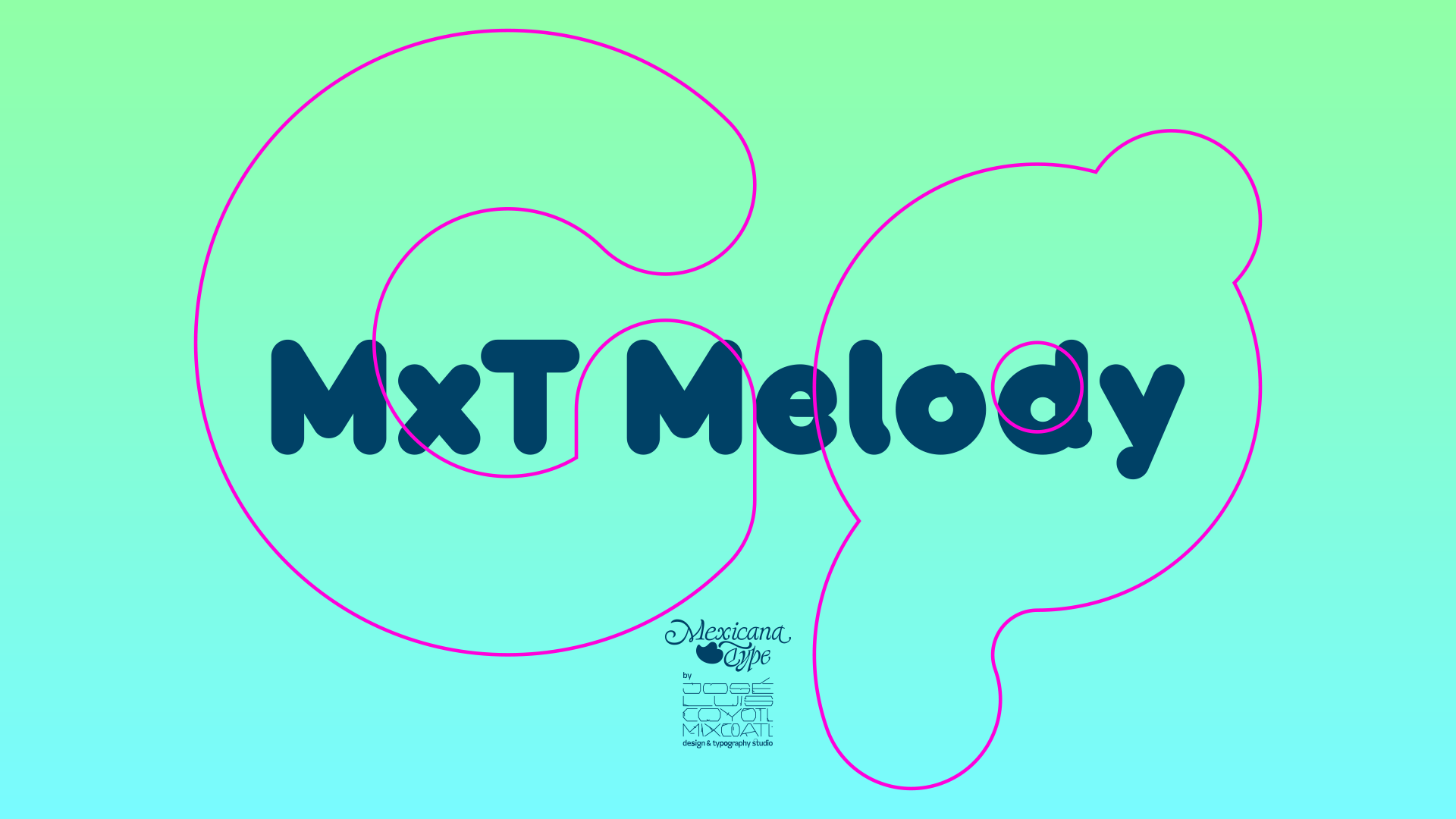 MxT Melody es una exploración de una letra geométrica redondeada, en proporciones clásicas y grosor de trazo bold, con acentos de forma en sus caracteres que en el conjunto generan bloques de texto que las hacen difíciles de pasar desapercibidas. Su cuerpo de texto sólido genera a su vez contraformas reducidas que fluyen en el ritmo de las letras. Si bien es una tipografía que puede pensarse limitada en sus aplicaciones, pero bien puede tener el potencial de uso dadas sus singularidades estéticas display y su lectura fácil para títulos.