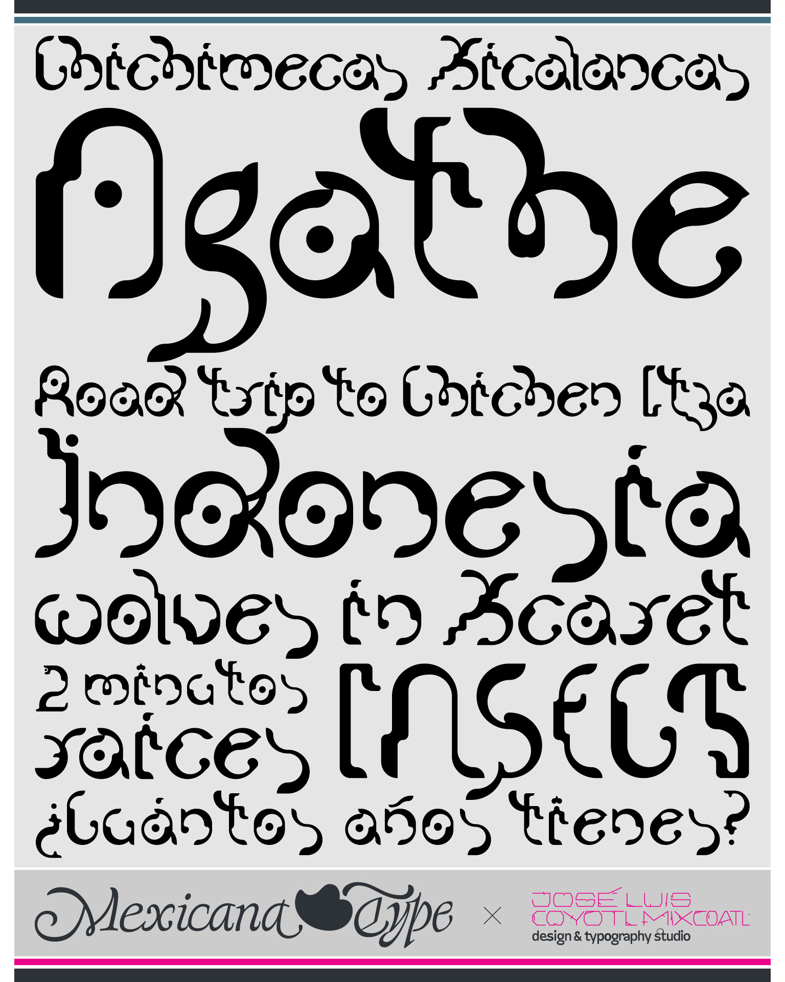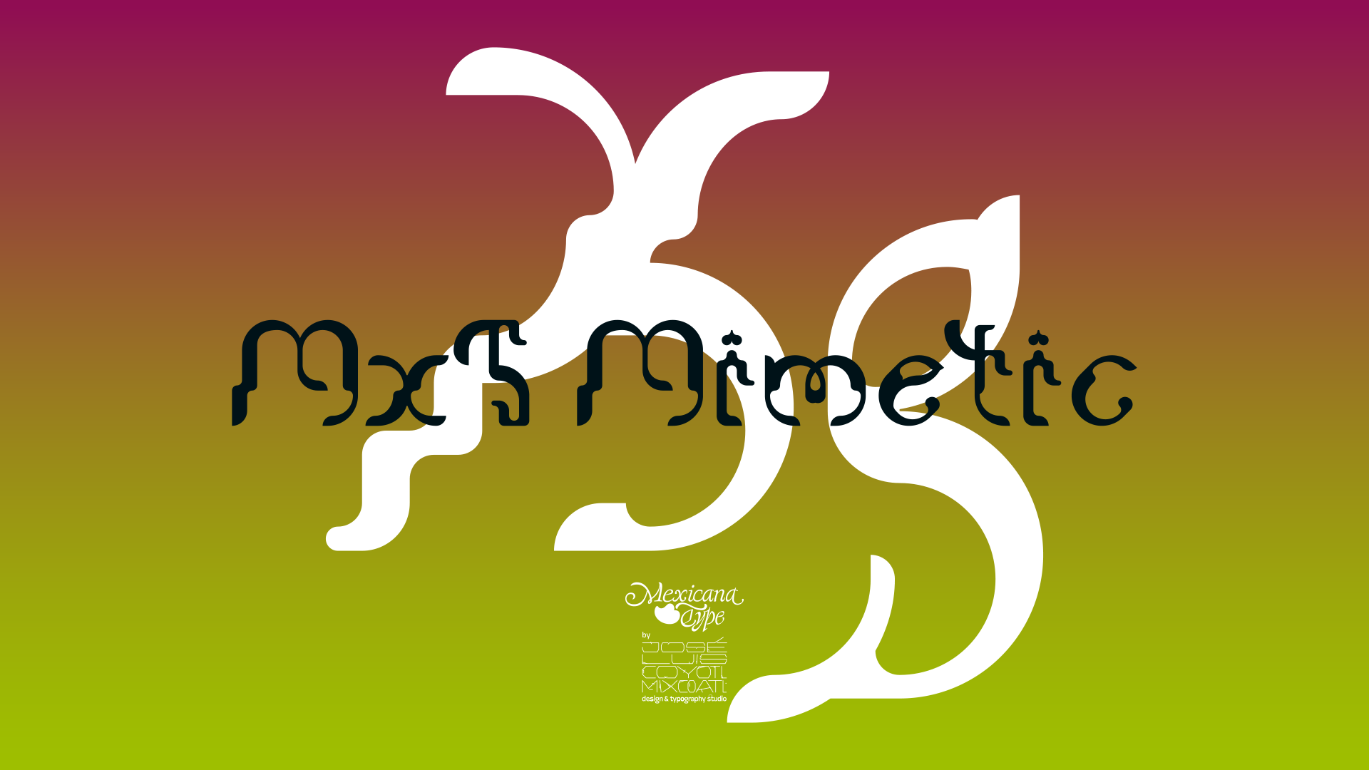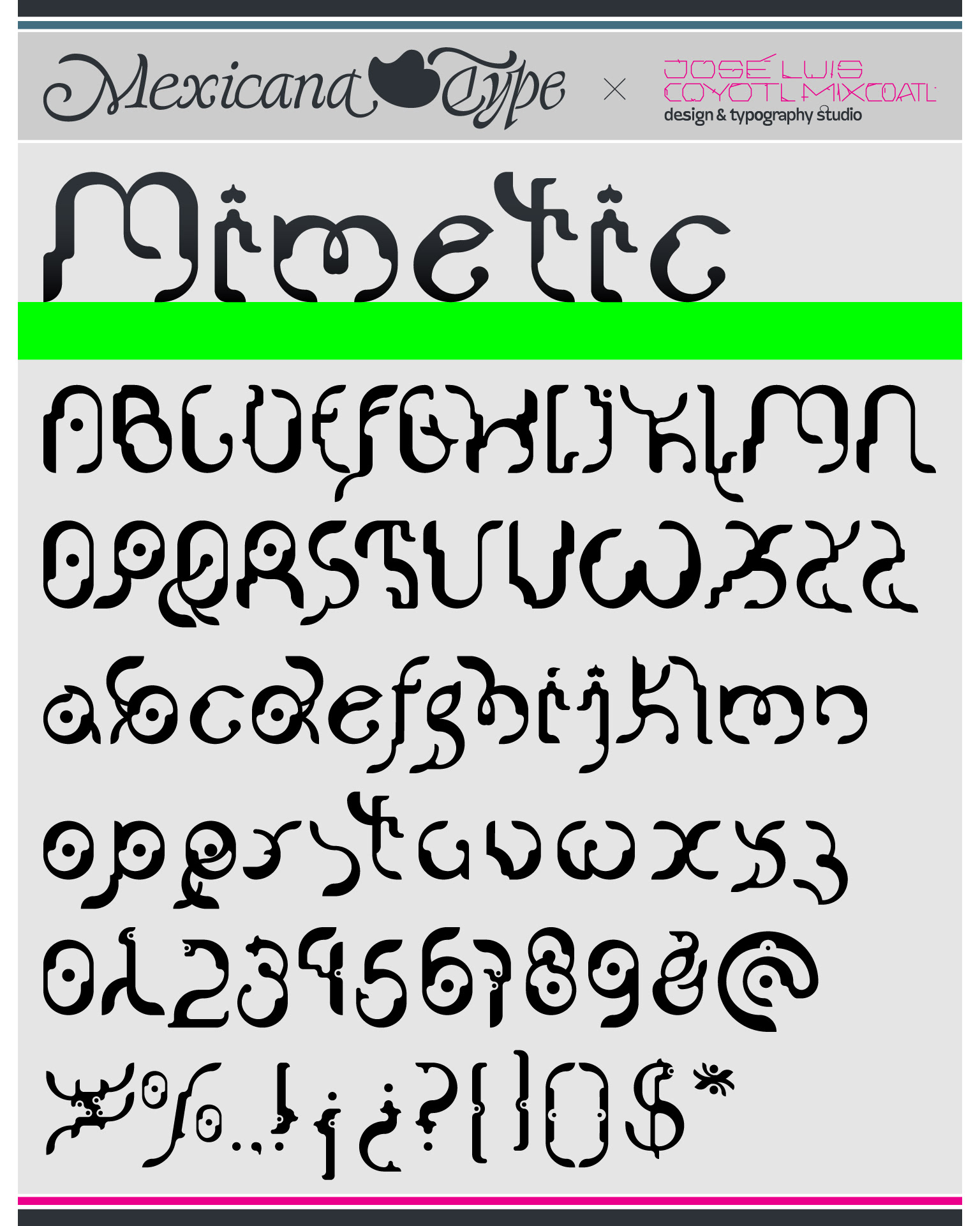 MxT Mimetic es un proyecto realizado en mis primeros años desarrollando tipografía mientras estudiaba la Licenciatura en Diseño Gráfico, con la idea de generar elementos tipográficos ornamentales al inicio, pero eventualmente terminó formando un set de caracteres para poder usarse con un sentido alfabético de lecturas cortas, principalmente con influencia de escrituras como el devanagarii y hebreo, con reminiscencias a formas orgánicas y un tanto miméticas y experimentales, generando textos con una amplia variedad de formas y contraformas en su composición de textos, haciendo un display interesante y lleno de posibilidades en sus usos.